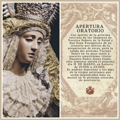 En el recogimiento propio de la próxima Cuaresma, nos acercamos a Nuestra Señora de la Salud para contemplarla en su humildad. Al dejar sus galas y vestirla de hebrea, proclamamos el espíritu de penitencia y conversión que la Iglesia nos invita a vivir.