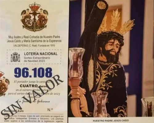 Nos alegra comunicar, que en el sorteo de la Lotería de Navidad del 22 de diciembre de 2023, nuestra papeleta con la imagen de Jesús Caído (nº 96108) ha sido agraciada con las dos últimas cifras del primer premio de dicho sorteo.