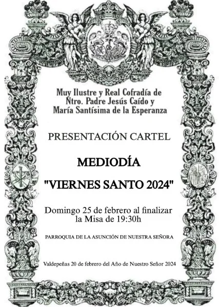 En el día de ayer, domingo 25 de febrero de 2024, fue presentado nuestro cartel "Mediodía Viernes Santo 2024"